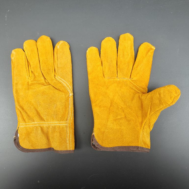 短款电焊手套/二层全牛皮/黄色单层AB级全皮分指小全掌/司机款