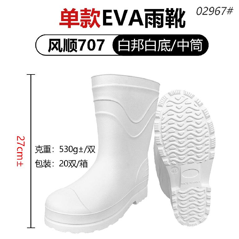 风顺27cm★EVA单雨靴707★37-46#中筒(白色邦+白底)0.53kg 计泡2.0kg