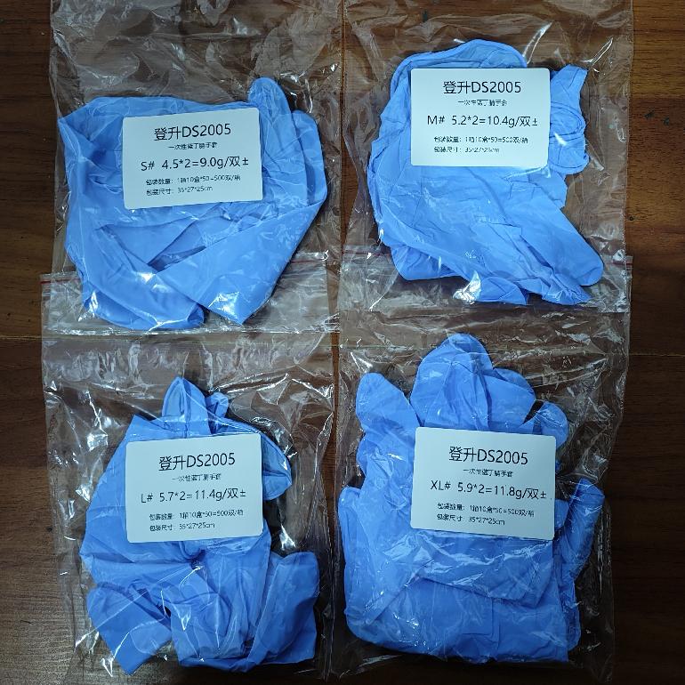 盒装 9寸蓝色5.0g★登升DS2005★一次性丁腈手套(食品级)S M L XL无粉 麻面