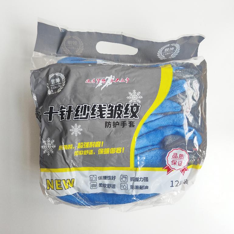 鲁坤L218十针灰纱蓝皱纹平挂手套 克重:99g±/双