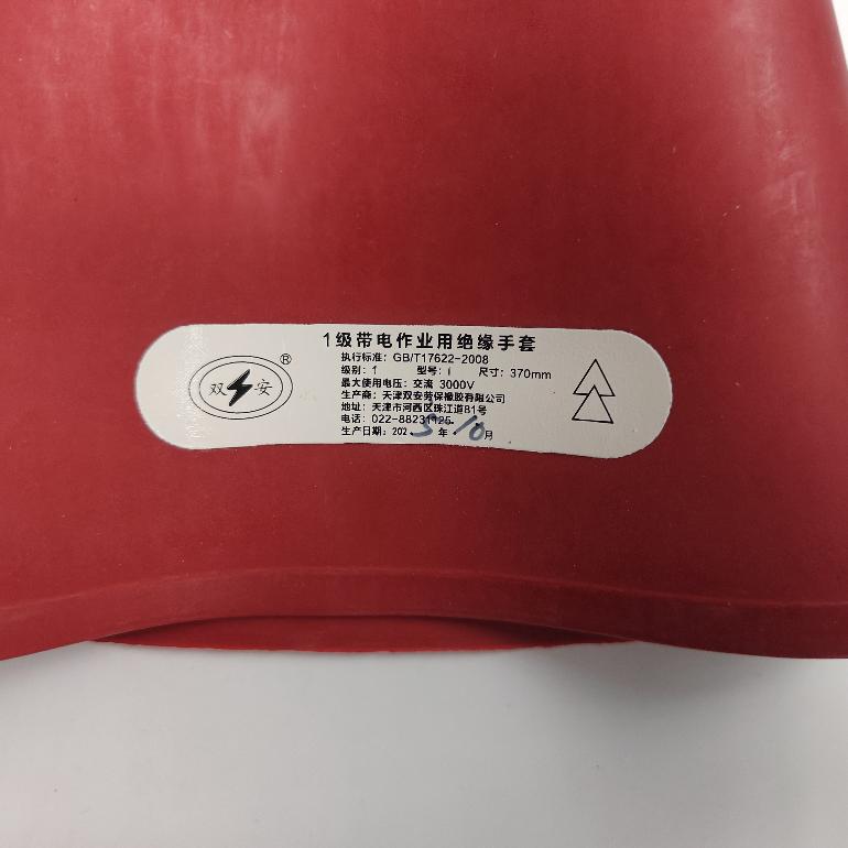 双安10KV电工绝缘手套,执行标准:GB/T17622-2008 生产许可证:(津)XK02-001-00014