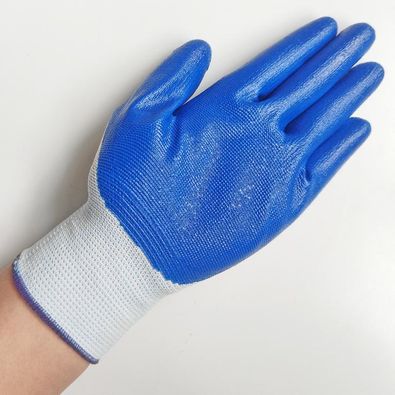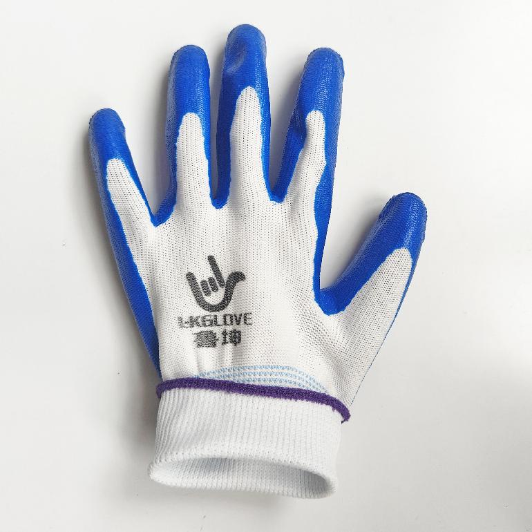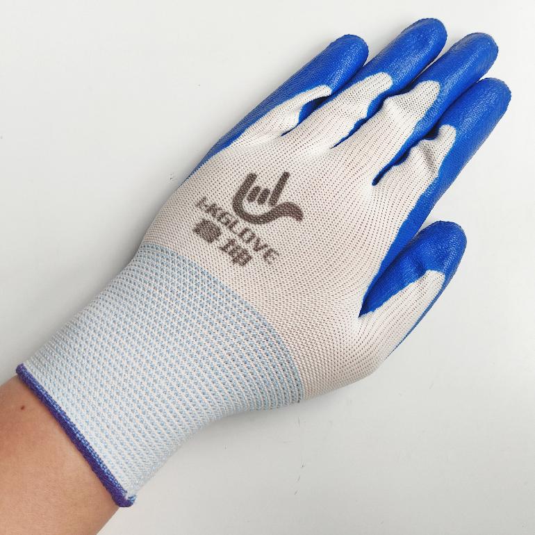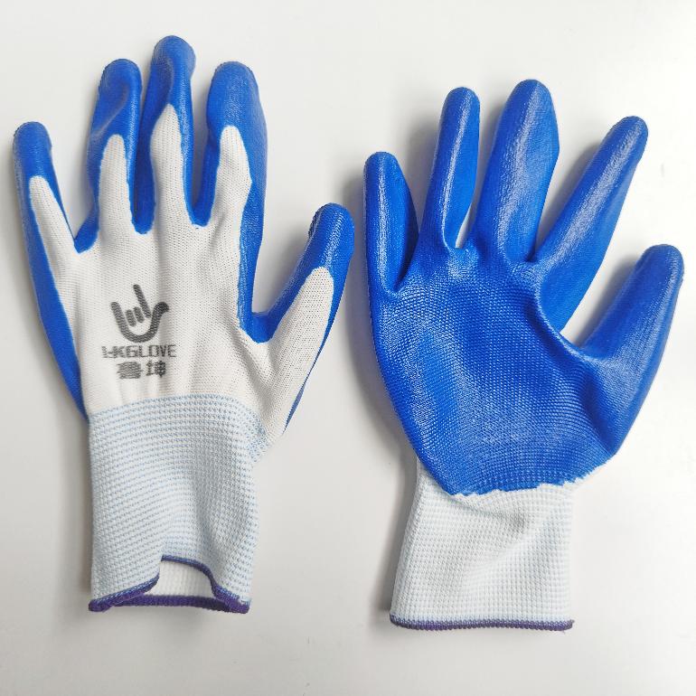 04940# 03552# 05388# 鲁坤L-KGLOVE白纱蓝丁腈浸胶平挂手套/32g