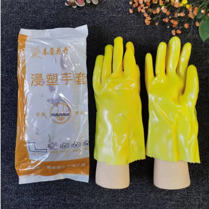 06434# 春蕾花开27cm黄浸塑 手套, ★ 包装: 不含税运: >10双3.1元; >100双3.0元; >1000双2.95元 网址:http://518laobao.com/html/lb_show.php?fid=6434