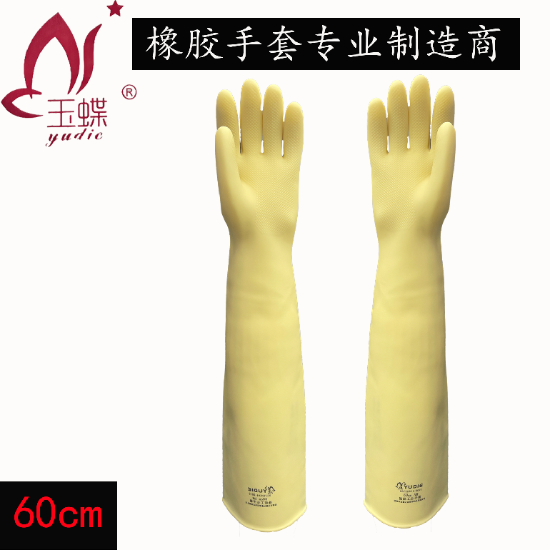 玉蝶A60cm加厚★橡胶工业手套★黄色耐酸碱