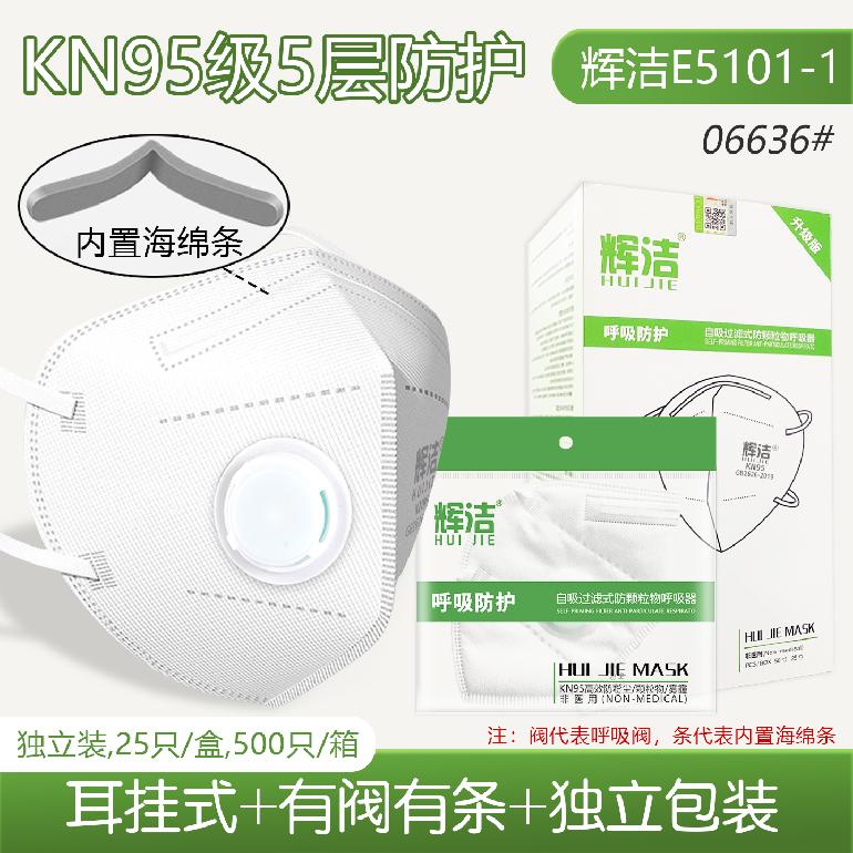 辉洁E5101-1耳挂式.带阀5层★kn95白色口罩★独立装(有内条)