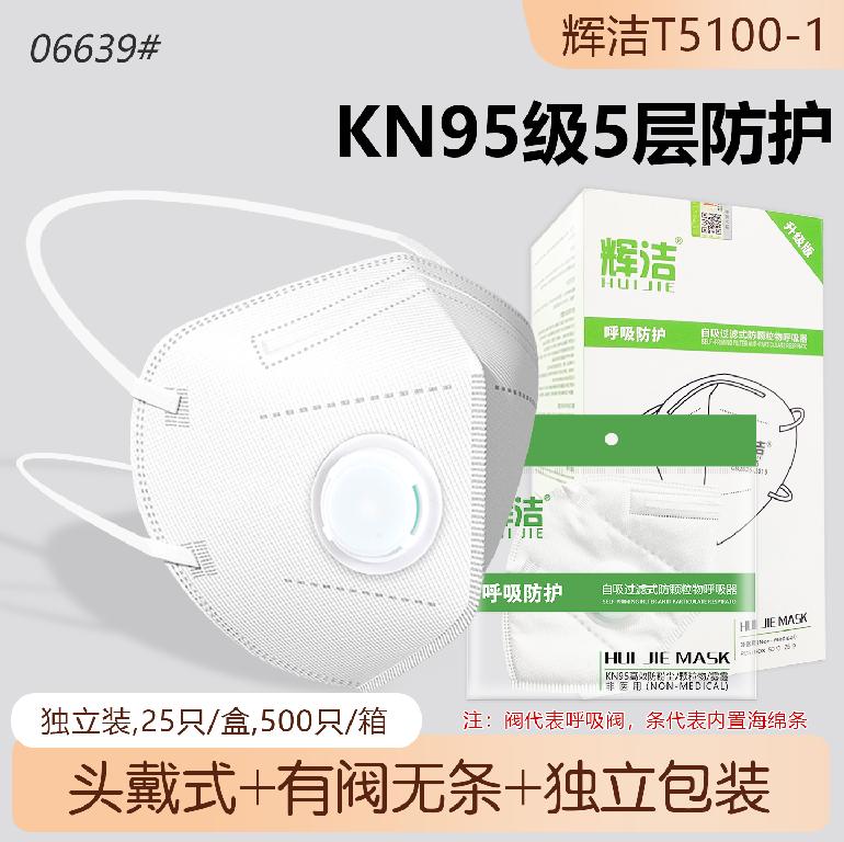 辉洁T5100-1头戴式.带阀5层★kn95白色口罩★独立装(无内条)