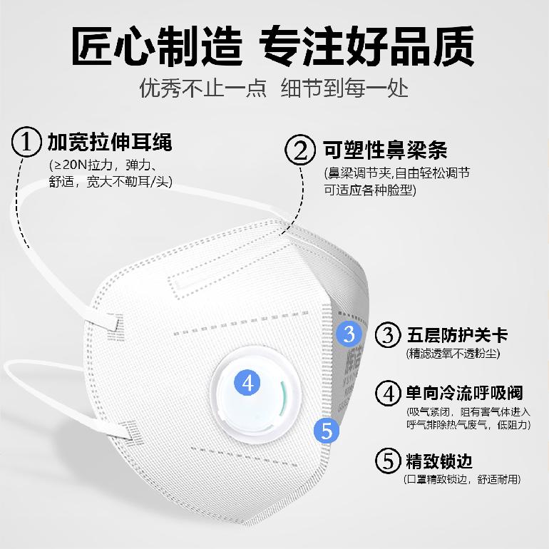 06639# 辉洁T5100-1头戴式.带阀5层★kn95白色口罩★独立装(无内条), ★ 包装:1只/袋 25只/盒 500只/箱 不含税运: >25个0.45元; >500个0.42元; >5000个0.4元 网址:http://518laobao.com/html/lb_show.php?fid=6639