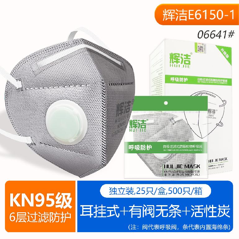 辉洁E6150-1耳挂式.带阀6层★kn95灰炭口罩★独立装(无内条)