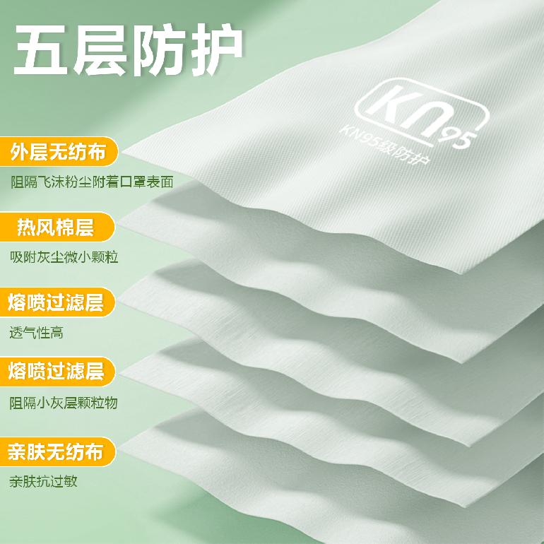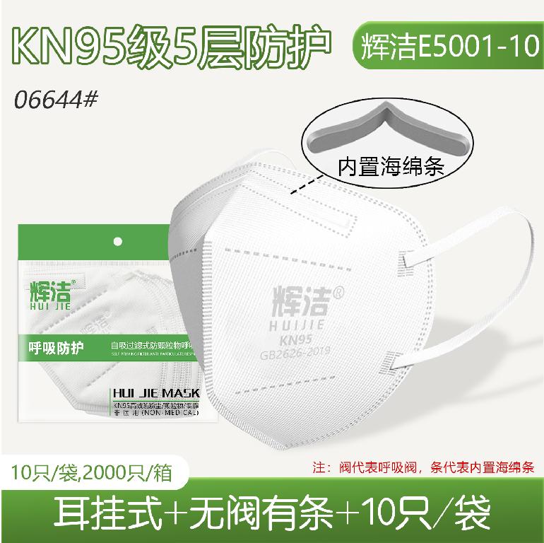 辉洁E5001-10耳挂式.无阀5层★kn95白色口罩★10只/装(有内条)
