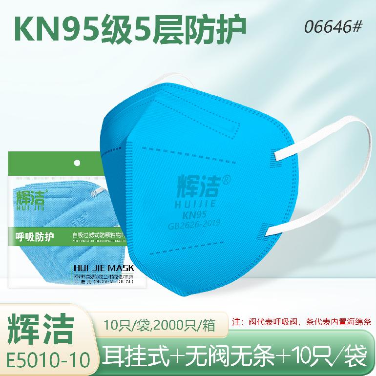 辉洁E5010-10耳挂式.无阀5层★kn95蓝色口罩★10只/装(无内条)