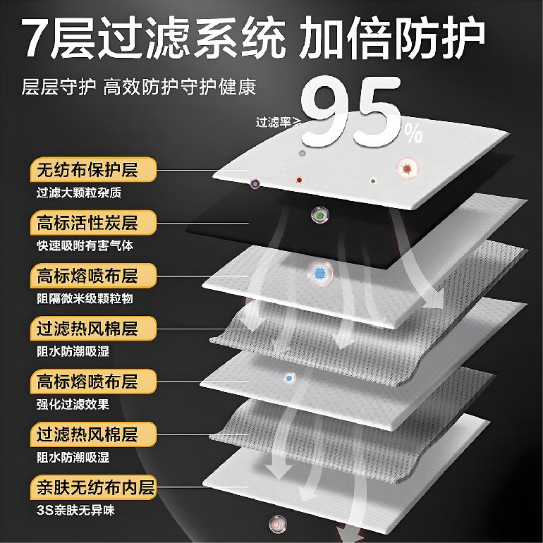 06647#辉洁★灰色活性炭★带呼吸阀★内置海绵条KN95折叠口罩★7层款5只装 包装:5只/包 1000只/箱 口罩层数:7层款 箱尺寸:68*34*46CM 箱重量:10.8kg