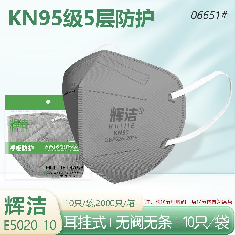 辉洁E5020-10耳挂式.无阀5层★kn95灰色口罩★10只/装(无内条)