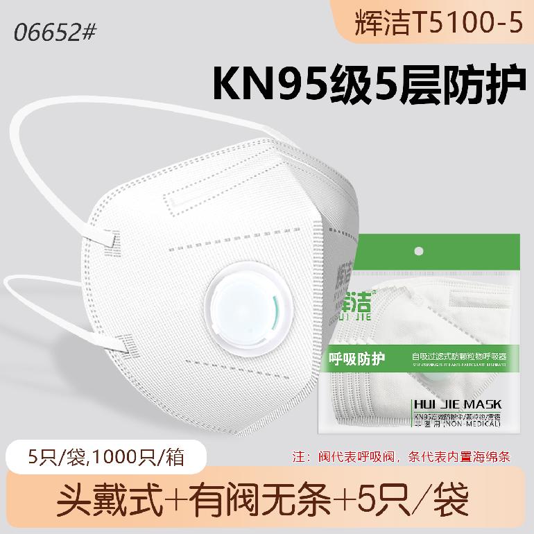 辉洁T5100-5头戴式.带阀5层★kn95白色口罩★5只/装(无内条)