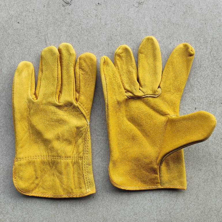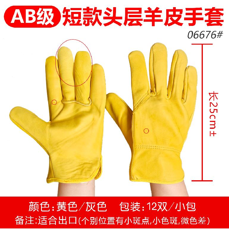 06676# 短款 黄色头层羊皮手套2★A级单层司机手套
