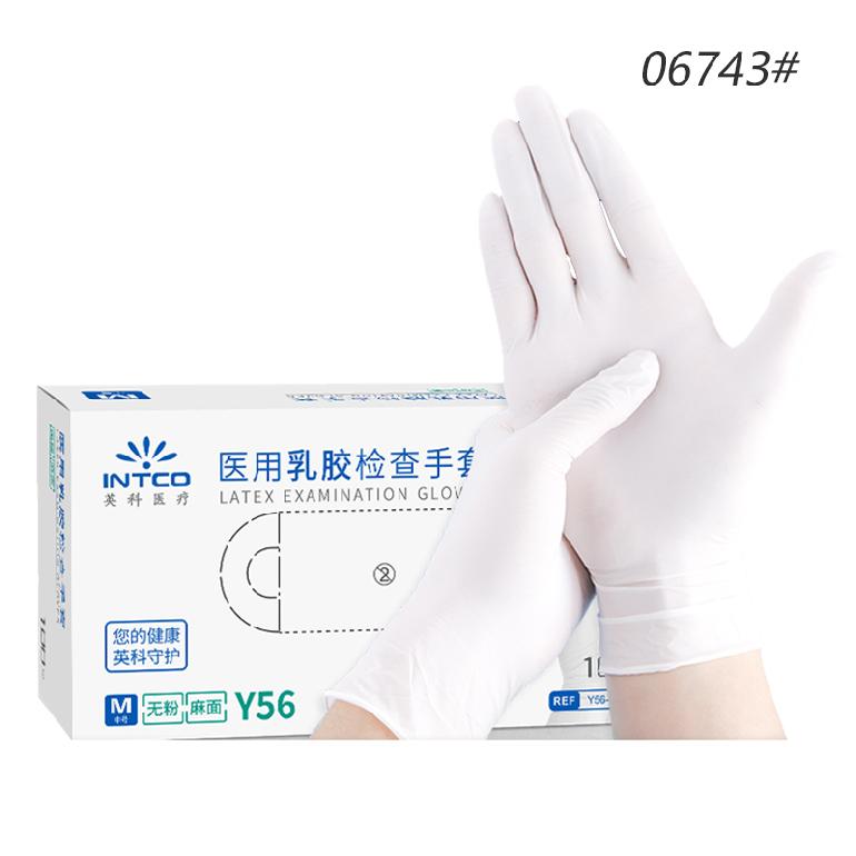 英科Y56医用★盒装9寸6.2g/只★一次性乳胶检查手套(耐用型.中厚)无粉/指麻S/M/L