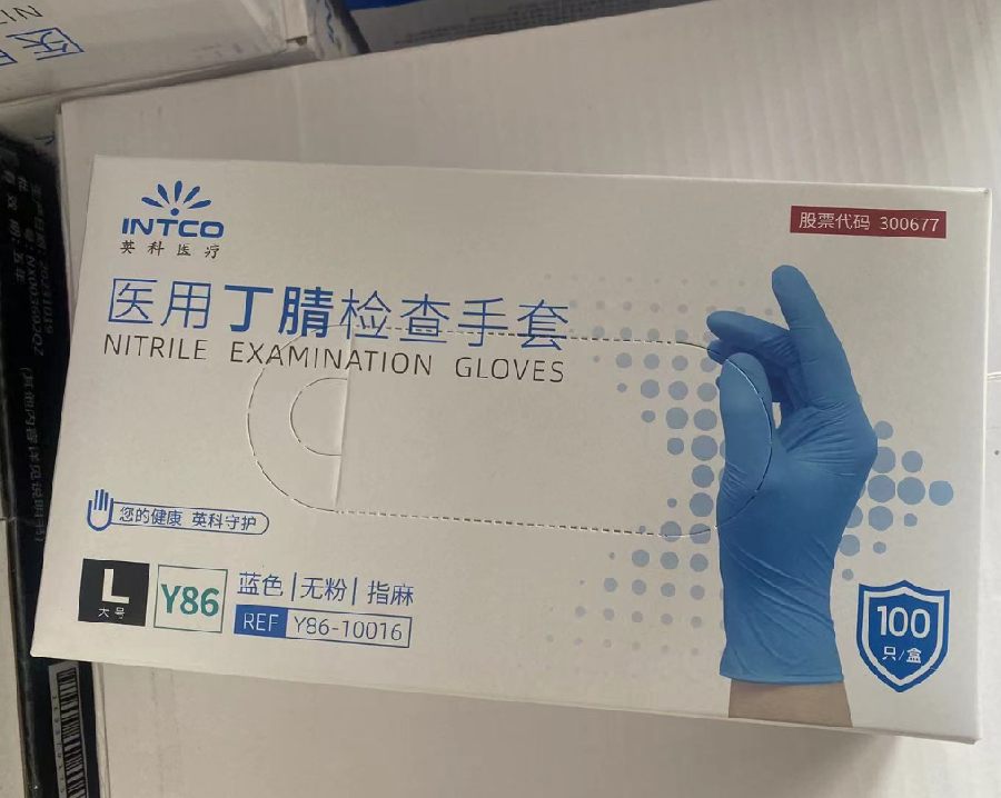 英科9寸医用一次性丁腈手套(纯丁腈-)蓝色S.M.L.XL/无粉/标准型 尺寸:32*26*24cm;