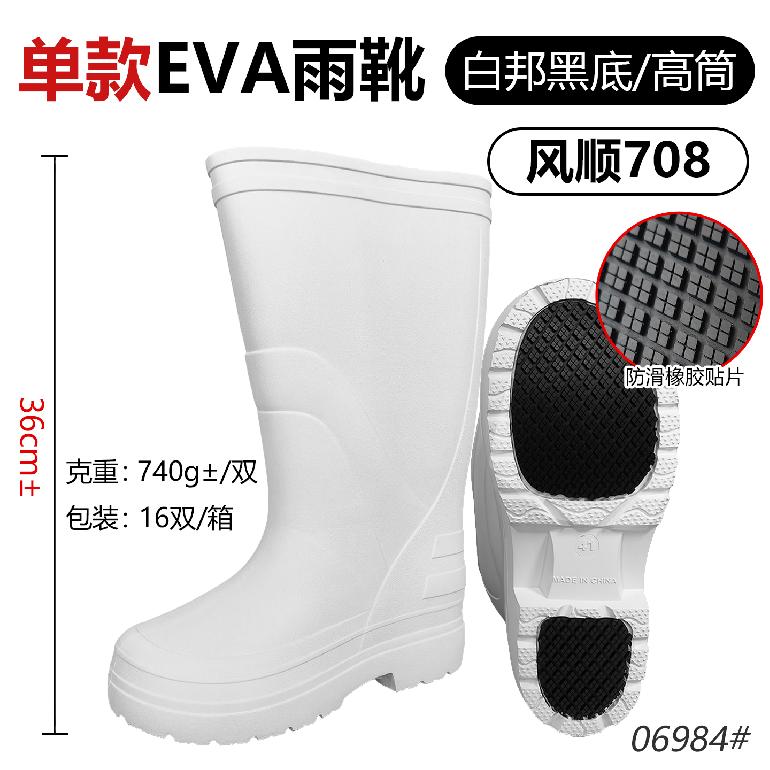 风顺36cm★EVA单雨靴708★36-47#单高筒(白色邦+黑底)防滑橡胶贴片