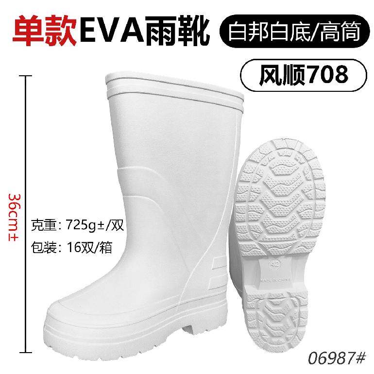 风顺36cm★EVA单雨靴708★36-47#单高筒(白色邦+白底)