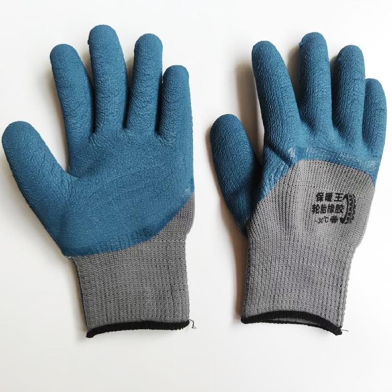 宏星-30℃★拉毛毛圈保暖王★灰纱蓝胶★轮胎橡胶发泡全挂浸胶手套
