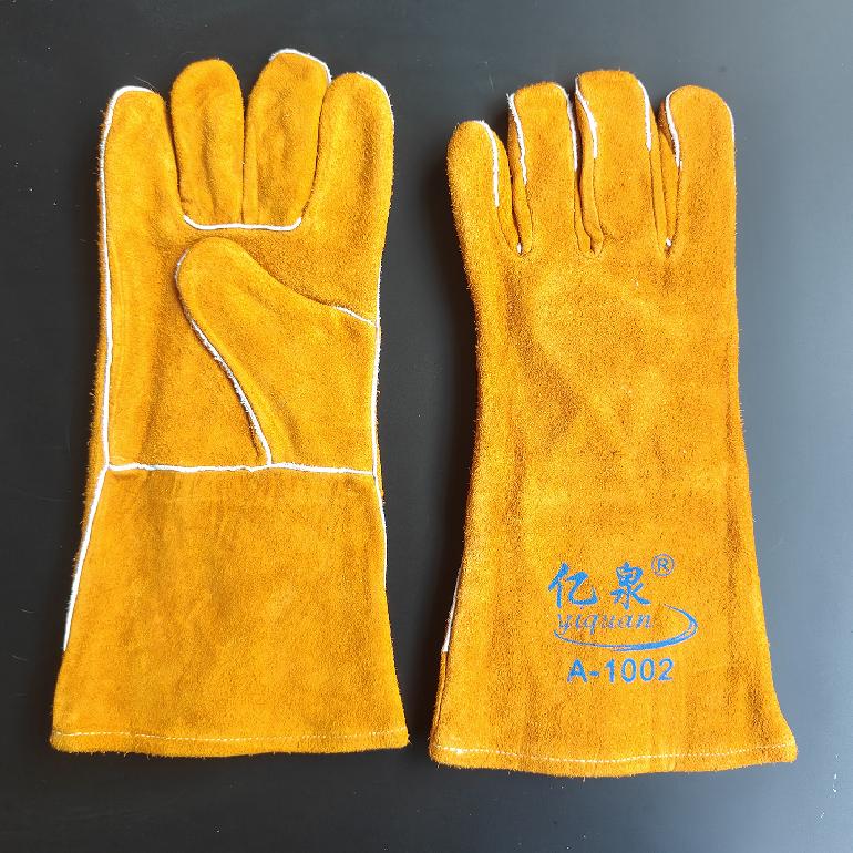 亿泉A-1002长款黄色二层全牛皮电焊手套
