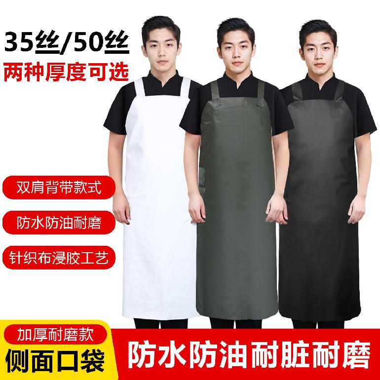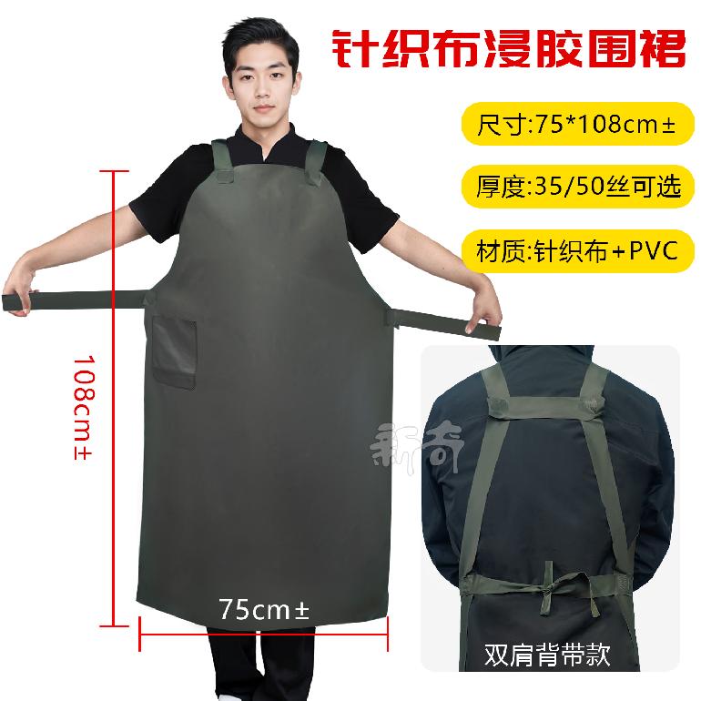 H型双肩.75*108cm±★白/绿/黑★针织布浸pvc胶围裙.带兜薄款★35丝±