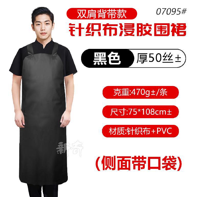 H型双肩.75*108cm±.★白/绿/黑★针织布浸pvc胶围裙.带兜厚款★50丝±