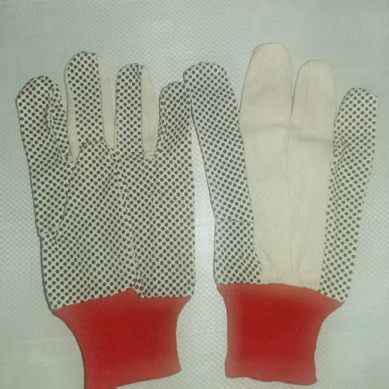 绒布紧口点胶点珠手套 白布黑点胶 80g 红袖口