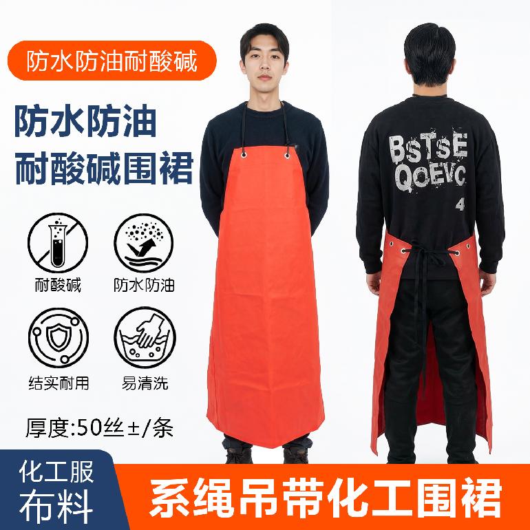07163#化工服布料.桔色系绳吊带围裙防水.耐油耐酸碱.阻燃114*107cm.厚50丝±