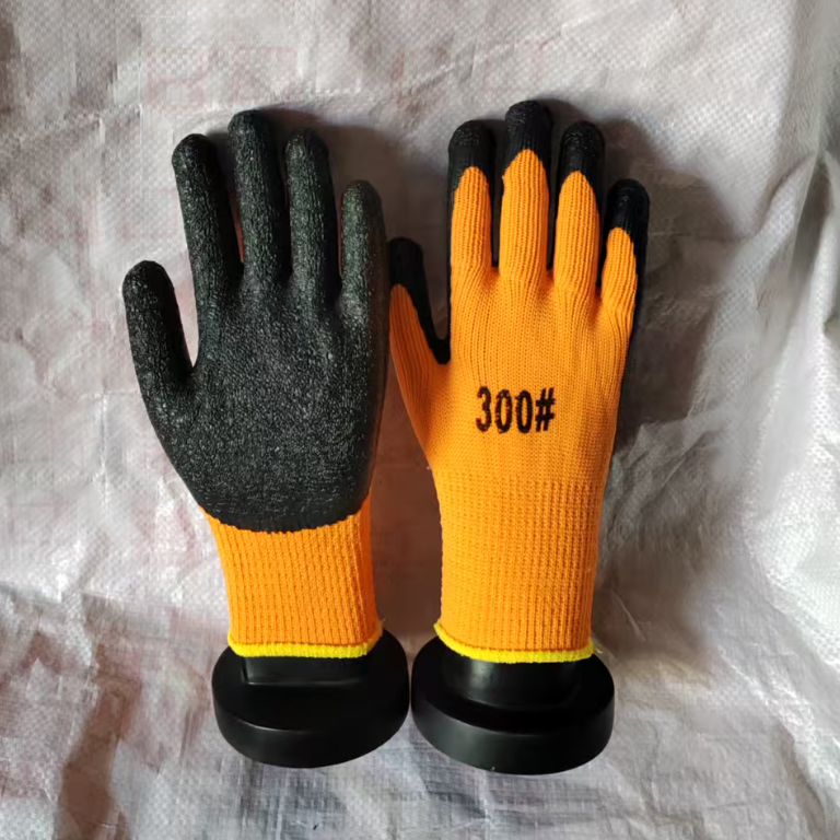 沂龙300#保暖王桔纱黑毛圈发泡平挂浸胶手套