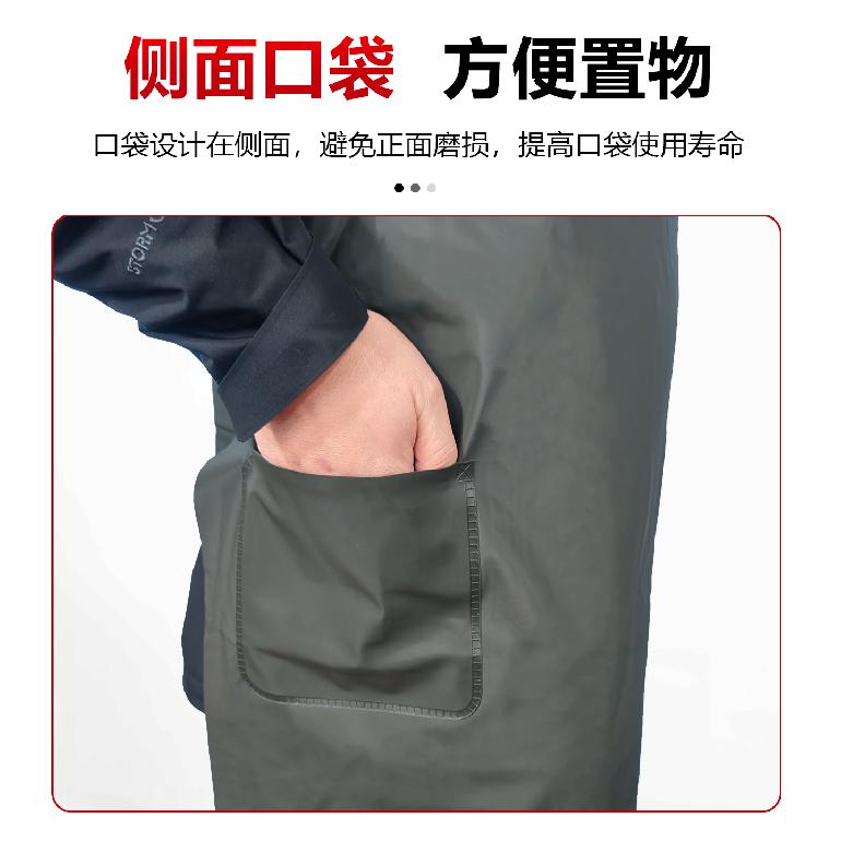 双肩H型★军绿色针织布浸PVC围裙★75*110cm50-55丝有兜50丝455g防水耐油