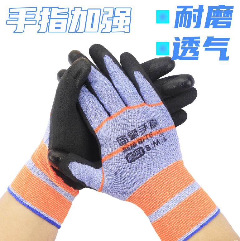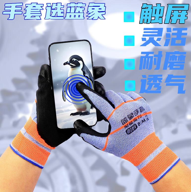蓝象T6聚能指弹力王★桔蓝纱黑胶★发泡触屏.平挂浸胶手套8/M