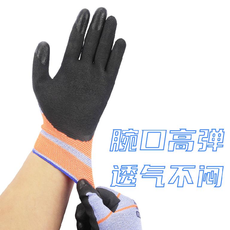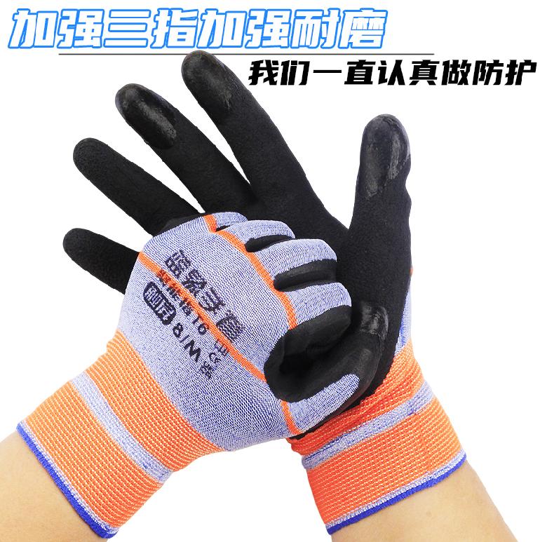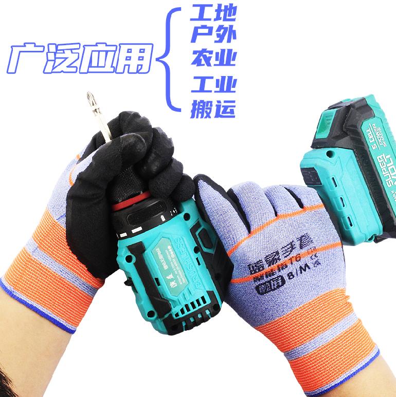 07189#蓝象T6聚能指弹力王★桔蓝纱黑胶★发泡触屏.平挂浸胶手套8/M