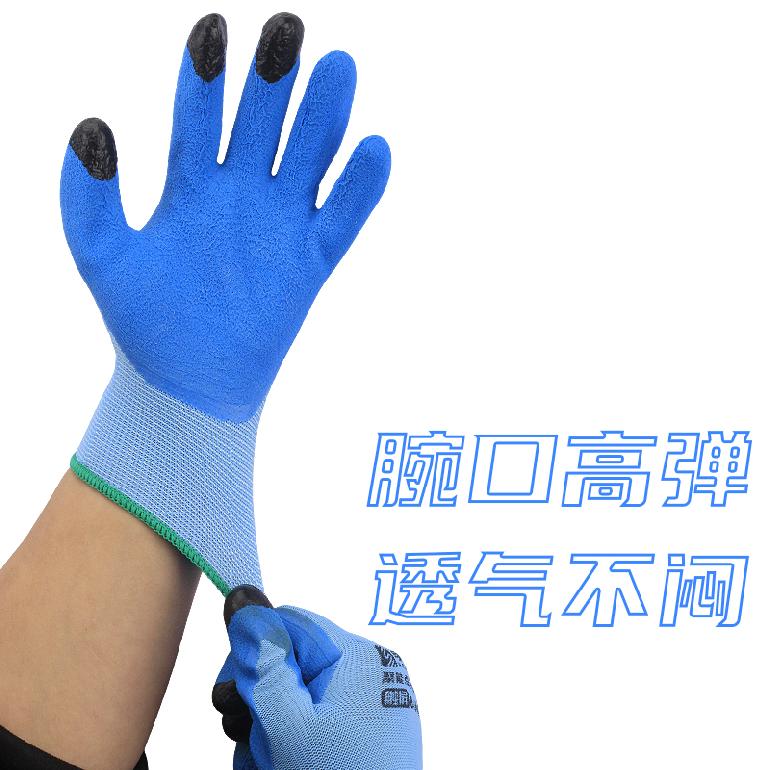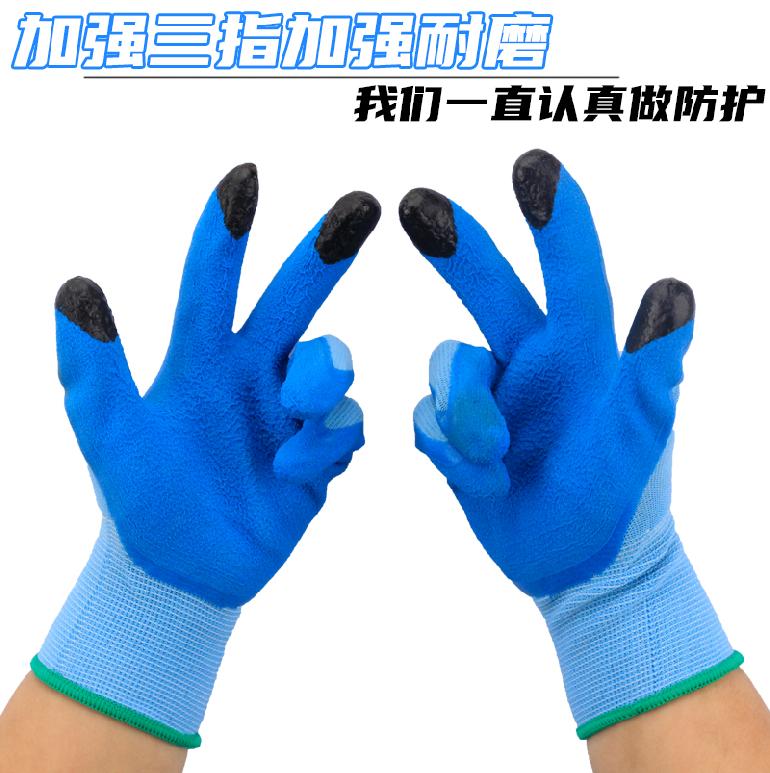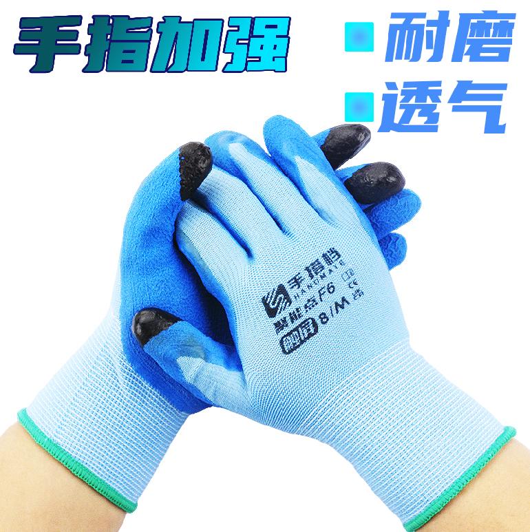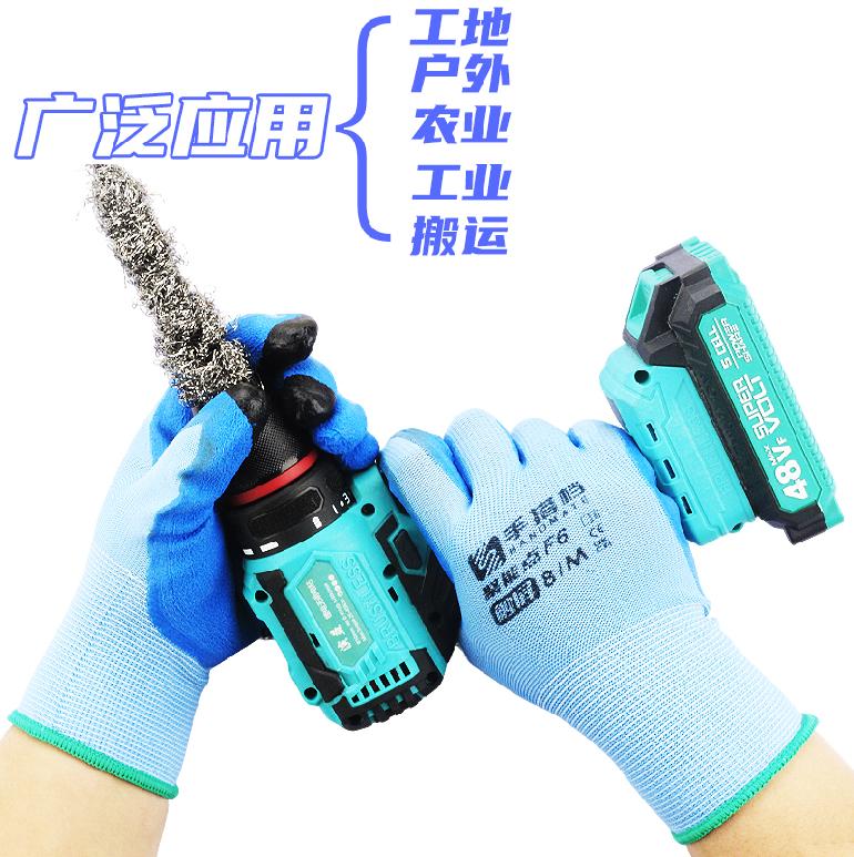 手搭档F6聚能指13针★蓝纱蓝胶★发泡触屏★平挂浸胶手套8# M