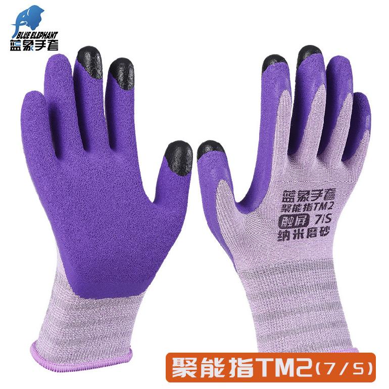 07200#蓝象TM2聚能指★13针紫纱紫胶★发泡触屏.平挂浸胶手套女士小号7# S