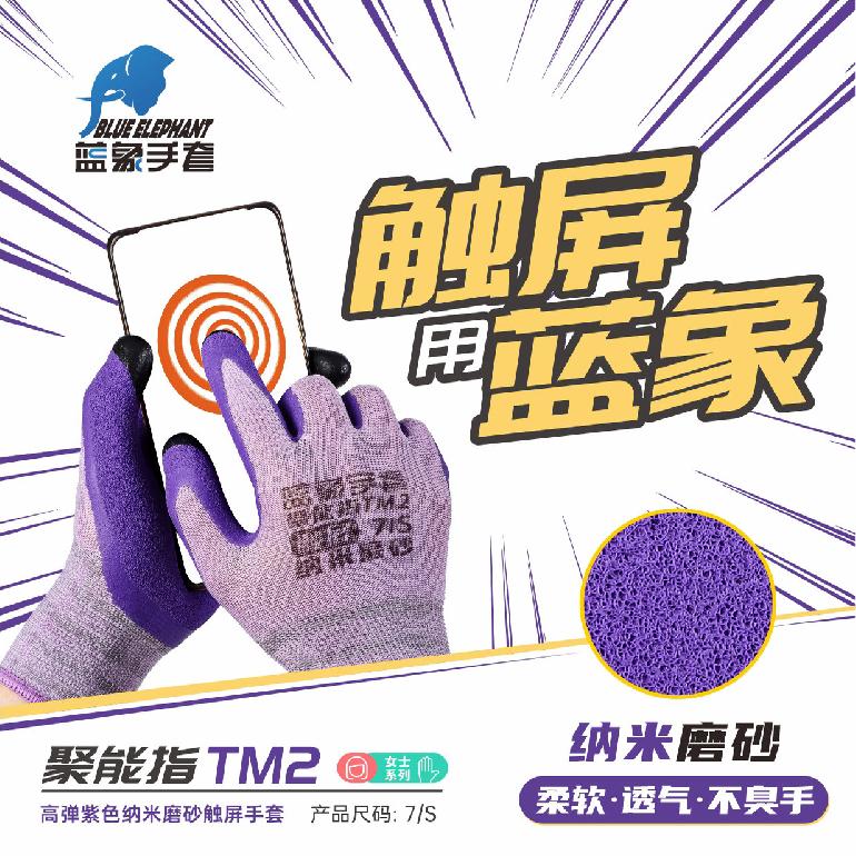 蓝象TM2聚能指★13针紫纱紫胶★发泡触屏.磨砂平挂浸胶手套女士小号7# S