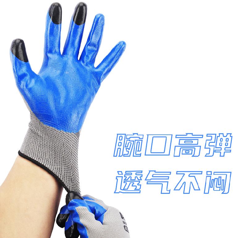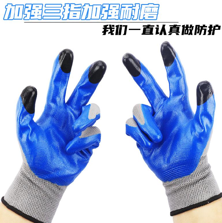 07205#手搭档A6聚能点13针★灰纱蓝胶★丁腈触屏★平挂浸胶手套8# M
