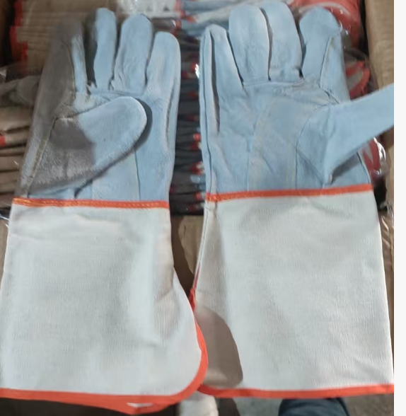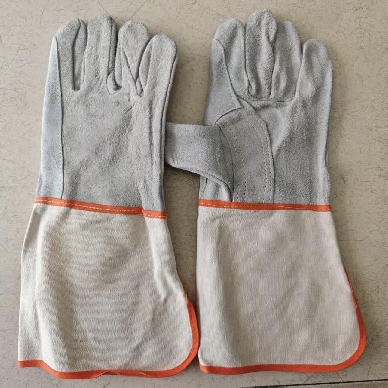 长款帆布接袖二层灰色牛皮电焊手套掌心加固.红包边