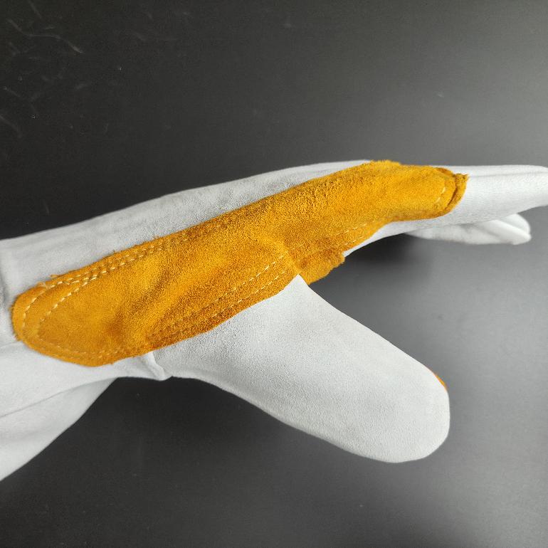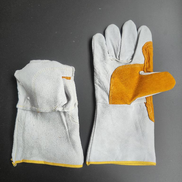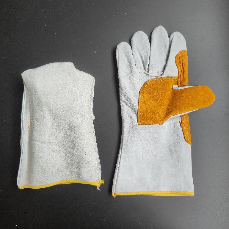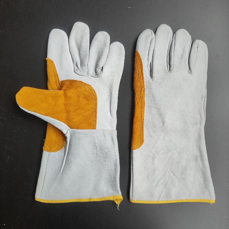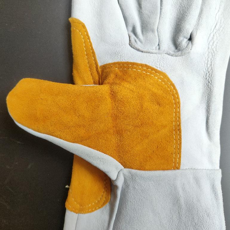 14寸34cm灰色AB级单层全羊皮★掌心/侧面黄羊皮加托电焊手套