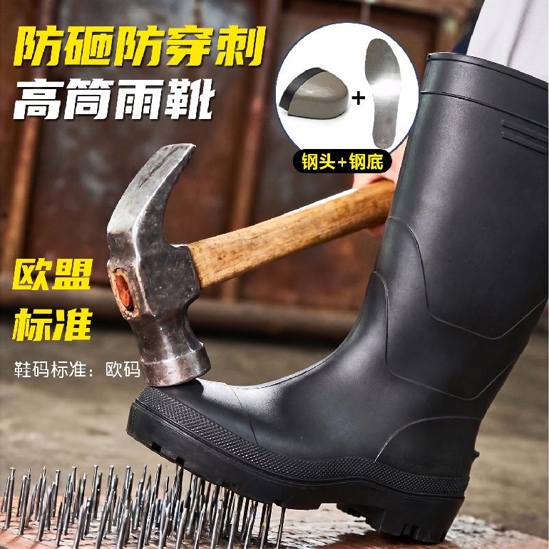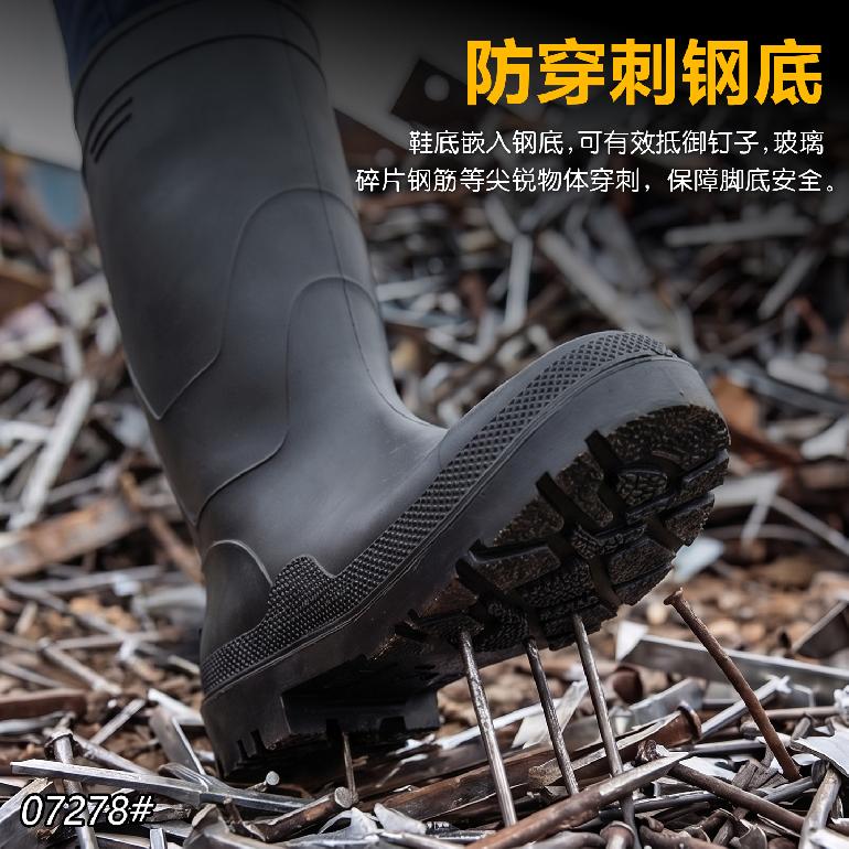 07278#防砸钢头+钢底★38cm高筒38-46#★单雨靴.磨砂黑邦+黑底 正常尺码38-46 47码无现货(可定制)