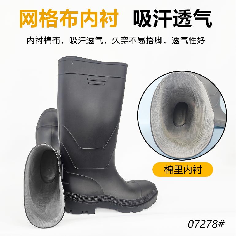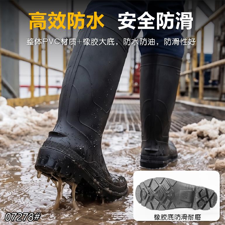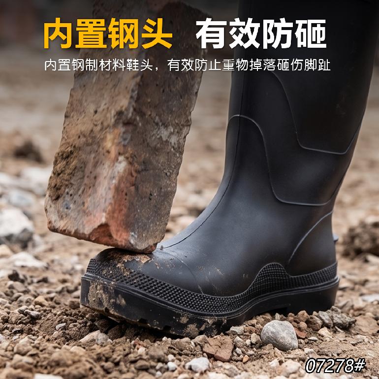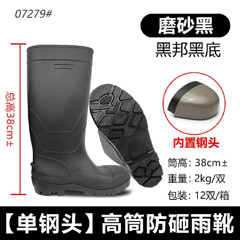 07279#防砸钢头(无钢底)★38cm高筒38-47#★单雨靴.磨砂黑邦+黑底