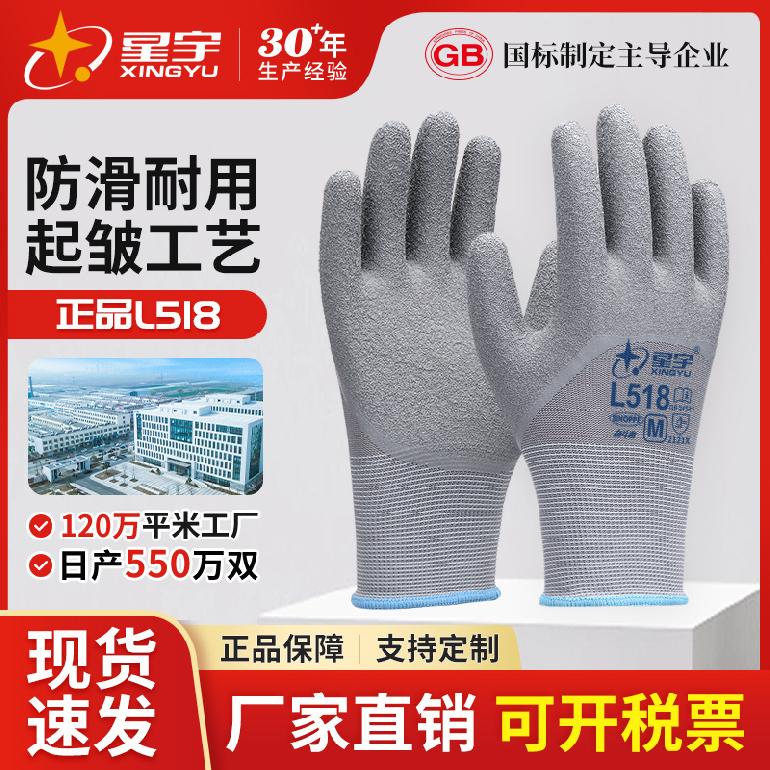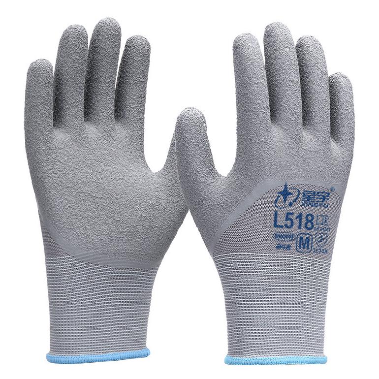 星宇518灰纱灰皱纹大半挂浸胶手套
