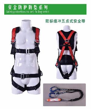 2H0-B03欧式双大钩安全带★2米绳/五点式/有缓冲/丙纶★红蓝色