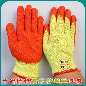 300#十针黄纱蓝皱纹手套平挂浸胶