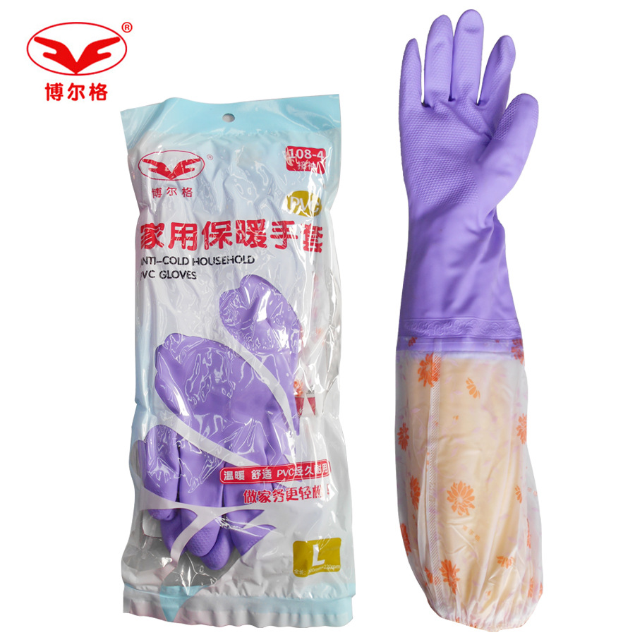 博尔格108-4家用手套 内加绒 接袖 紫色、防水耐油