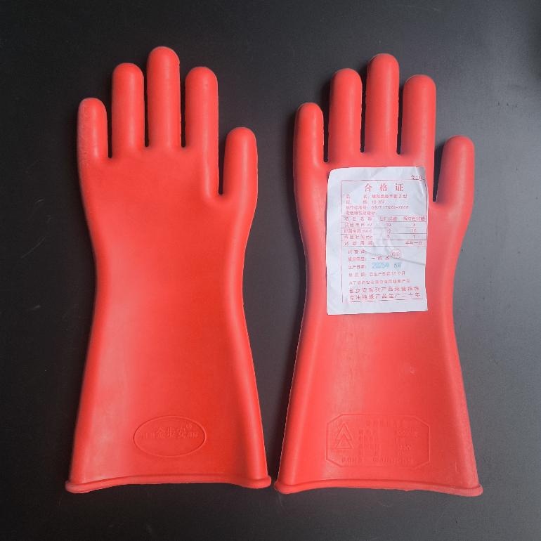 电工绝缘手套10kv★金步安.直型.红色胶 高压电工手套