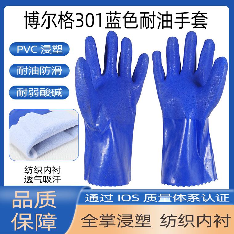 博尔格301蓝色胶手套XL内加衬 防水.耐油.耐弱酸碱浸塑27cm L