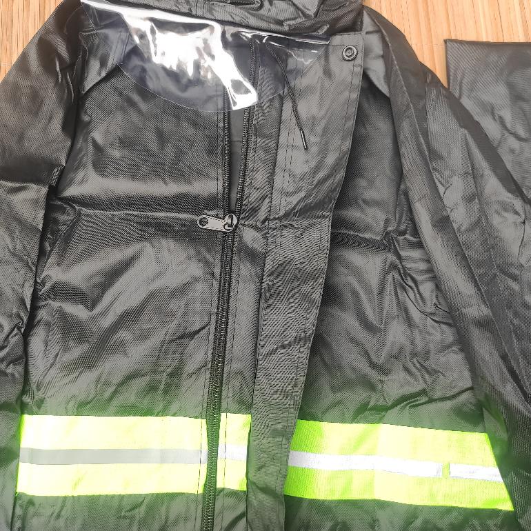 套装分体雨衣★单层★牛津布警式3507藏黑色上衣反光条-通码
