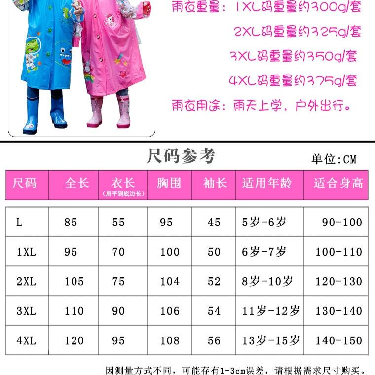 儿童雨衣0198-2XL卡通印花/粉色/蓝色