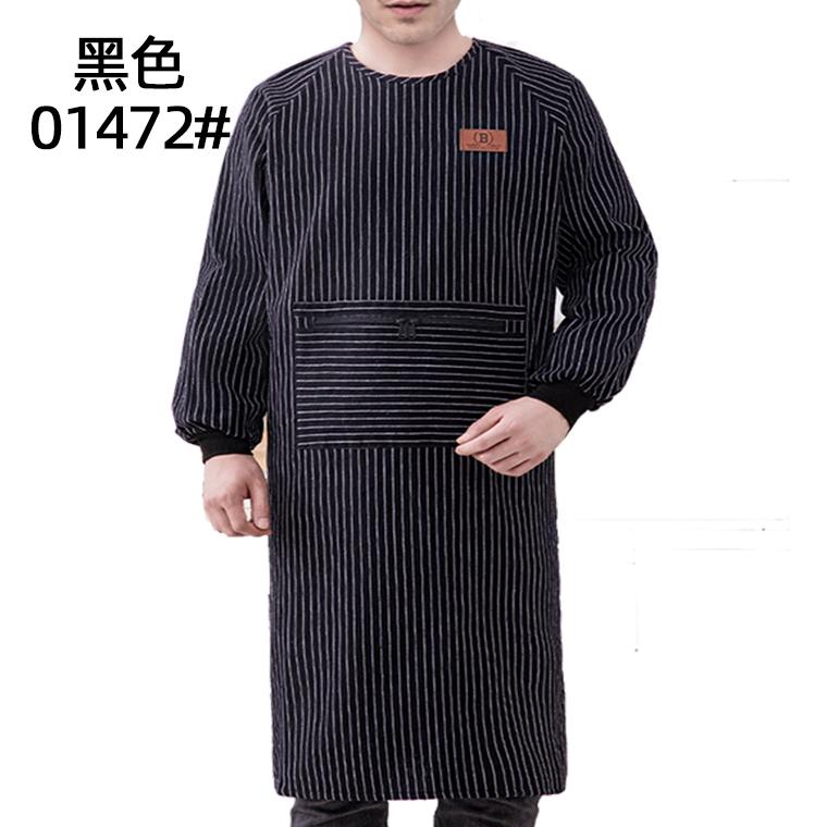 倒褂/倒掛倒挂: 彩条 方格条纹棉布罩衣1.2米 长款带袖反穿衣 大口袋拉链厨房家用男女款