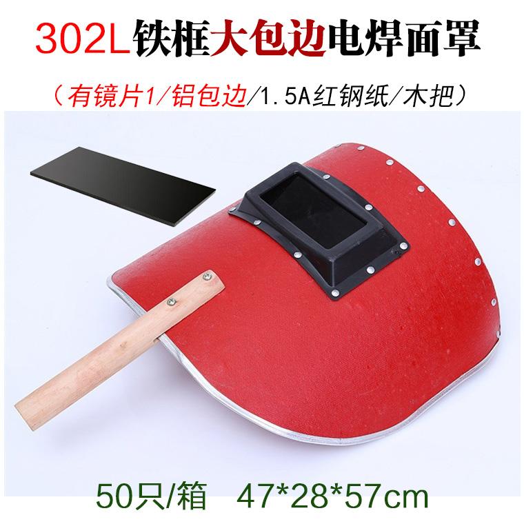 .手持式★302L款铝包边/铁框带镜片-木把/1.5A红钢纸电焊面罩